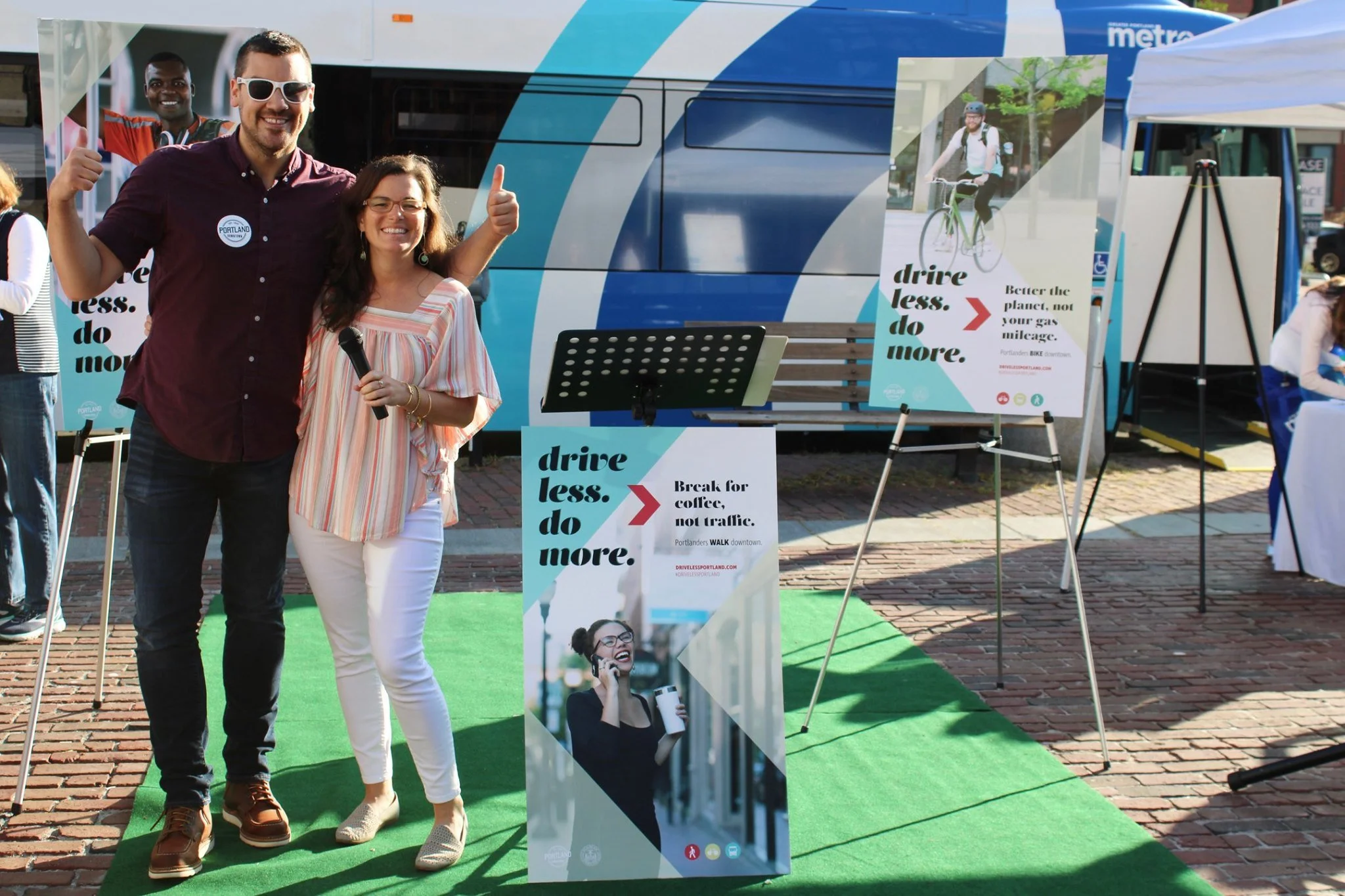 To encourage multimodal modes of transportation in Portland, I coordinated the DRIVE LESS, DO MORE campaign in partnership with Warp + Weft. We launched the campaign with a lively kickoff party in Monument Square – and branded street banners, radio promos and TV spots added to the buzz. Click the button to view the TV ad – and keep your eyes peeled for my big cameo as a METRO bus rider!